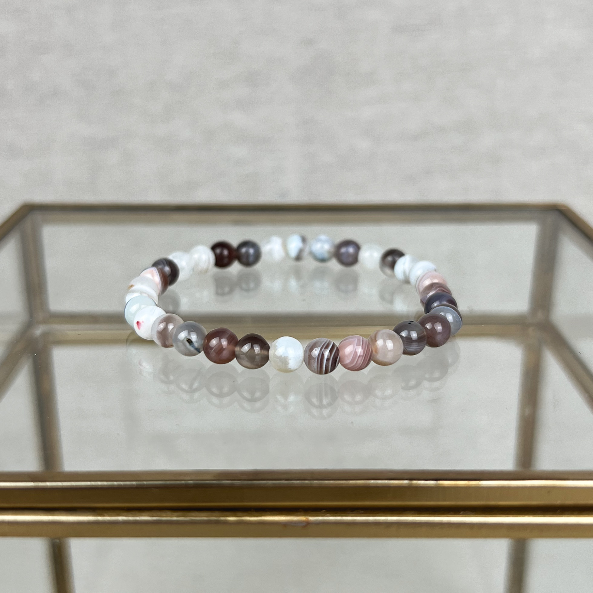 Laat deze Botswana agaat armband dienen als een herinnering aan je innerlijke kracht en veerkracht, en draag het met trots als een symbool van stabiliteit en harmonie in je leven.