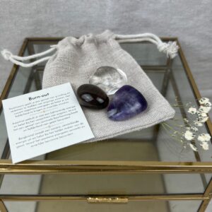 Dit setje stenen wordt geleverd in een katoenenzakje en een kaartje waar uitleg op staat.