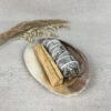 Ontdek de reinigende kracht van deze salie smudge. Deze witte salie bundel staat bekend om zijn vermogen om negatieve energieën te verdrijven en ruimtes te zuiveren. Gebruik de salie bundel door het aan te steken, de vlam kort te laten branden en vervolgens uit te blazen, waardoor de rook vrijkomt. Loop vervolgens rustig door de ruimte terwijl je de rook verspreidt en visualiseer hoe de negatieve energieën worden weggevoerd. Herhaal dit proces in elke hoek en elke kamer van jouw huis of werkruimte om een gevoel van rust en helderheid te bevorderen.
